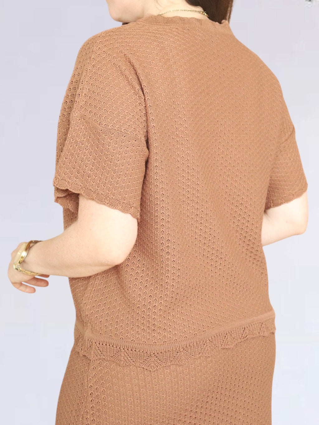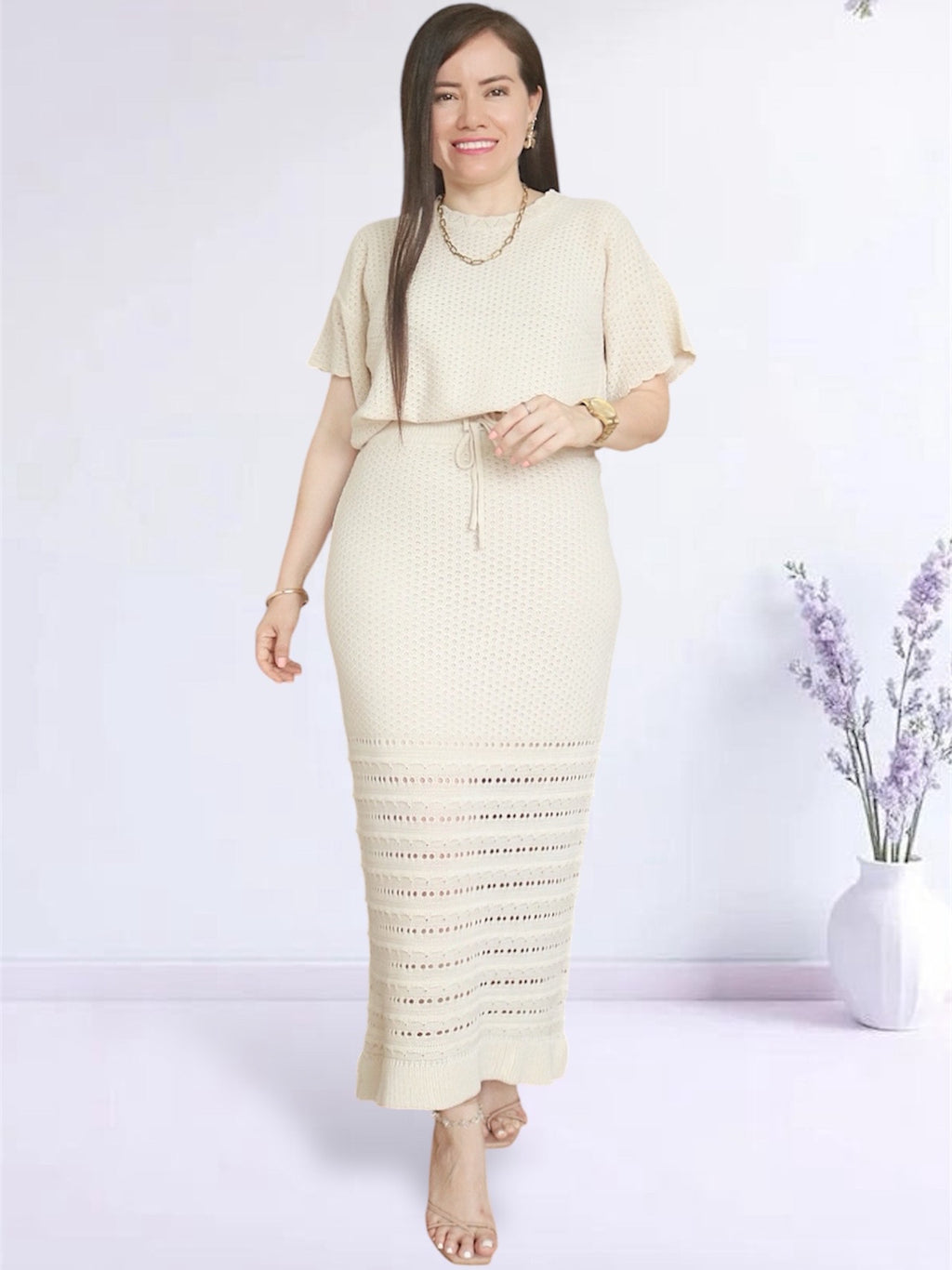 Polo con tejido calado, en hilo tacto algodón con regulador en cintura para poder colocarlo a la altura que desees. Puedes combinarla con la Maxifalda tejida cocos o cualquier falda, short o pantalón.