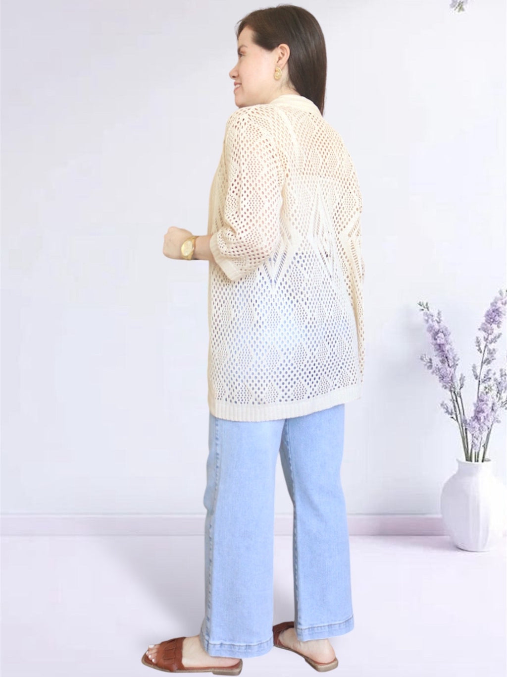 Cardigan tejido en hilo tacto algodón, con detalle de capa para poder utilizarlo como complemento perfecto encima de cualquier polo, top o ropa de baño. Abarca desde la talla S hasta la talla L.