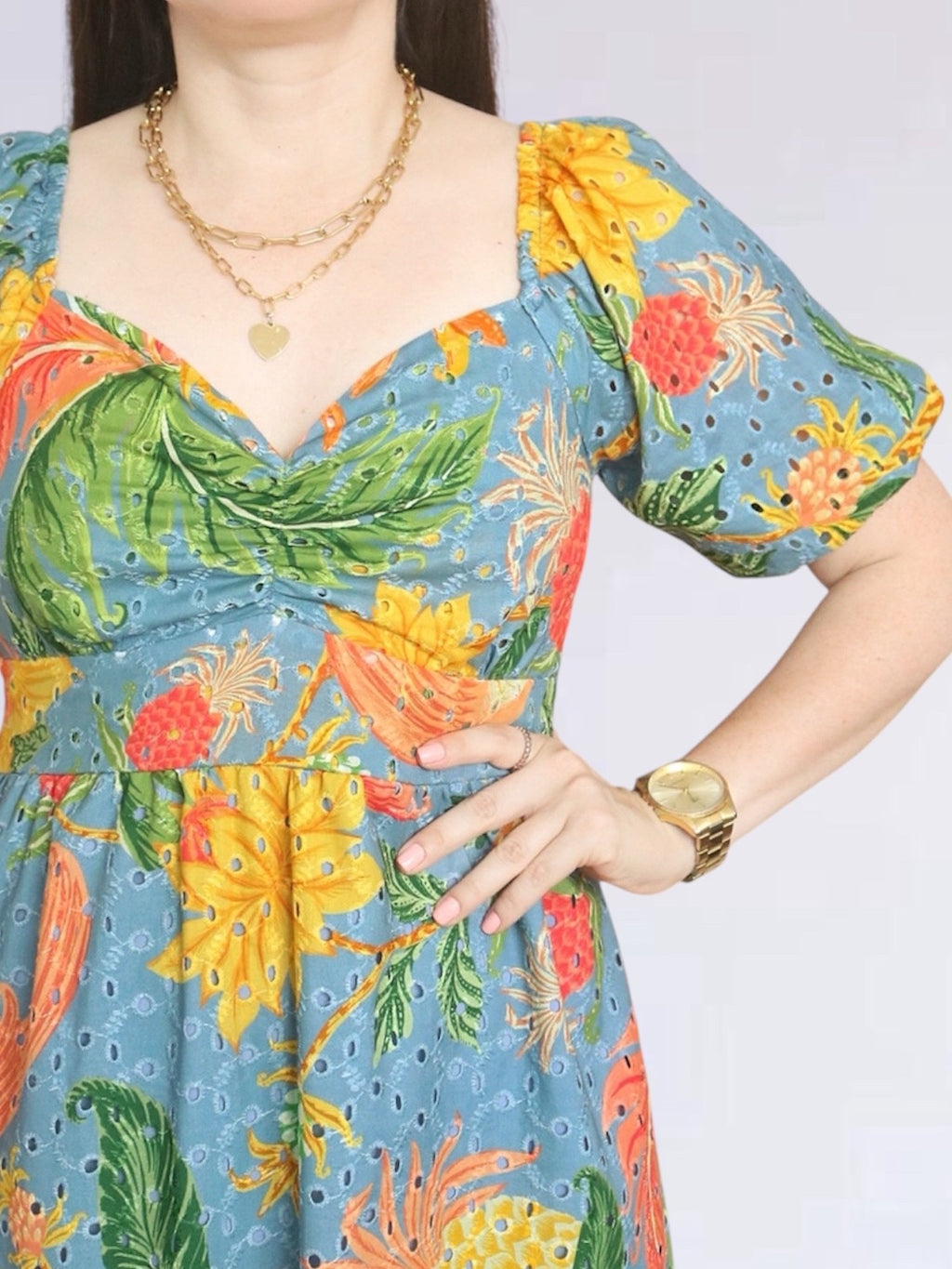 Vestido diseñado en corte A, con pretina plana en delantero, con escote corazón en busto y espalda multiaguja. Viene con faldón en 2 tiempos, con un sutil recogido en el segundo faldón, con forro mini en falda. Además cuenta con mangas cortas con elástico en los hombros de estilo off shoulder, abullonadas y ceñidas con elástico delgado en la parte final, para regularlo a la altura que desees. Puedes usarlo con sandalias de taco o planas, stilettos, botas, botines y hasta zapatillas, dependiendo de la ocasión.